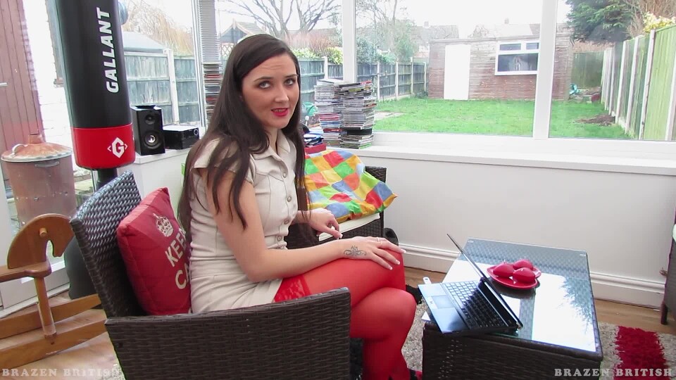 Wow, that cute as glows nice and red, to match her lipstick and stockings.